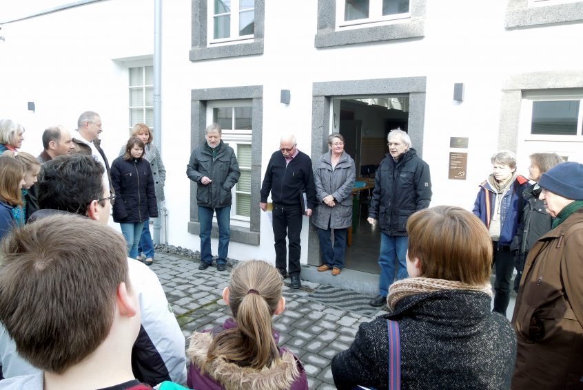 Foto: Vor der Synagoge erfuhren die Besucher aus Kempenich Wissenswertes über die Geschichte des Gebäudes.