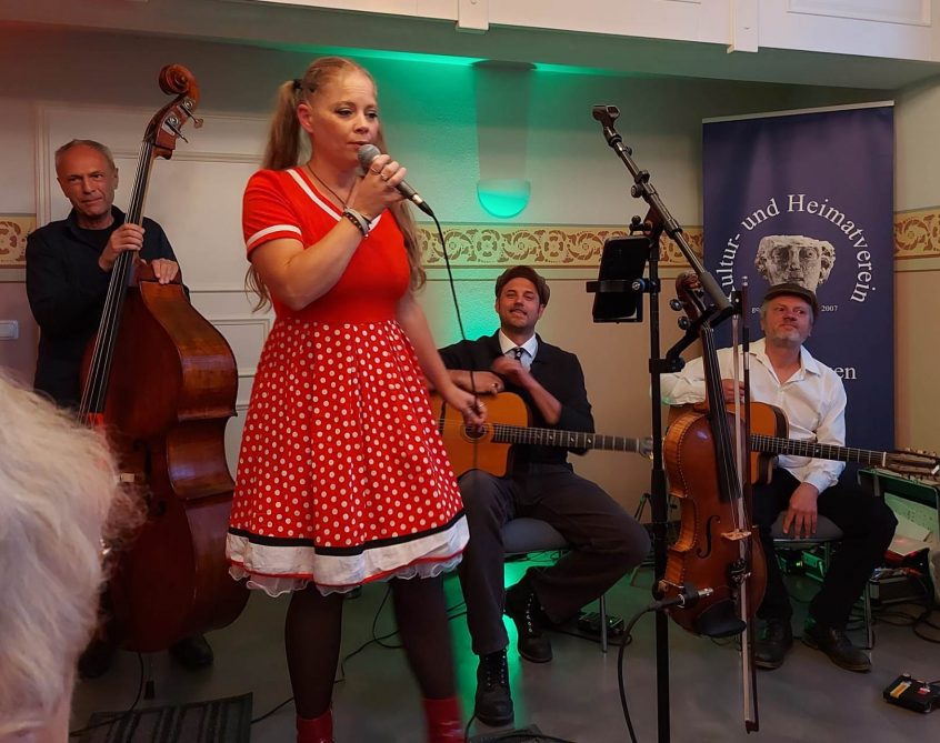 Erstmals gastierte das Quartett MAINOUCHE in der ehem. Synagoge Niederzissen und empfahl sich für weitere Auftritte, wie Richard Keuler vom gastgebenden Verein am Ende des Konzerts zur Freude der zahlreichen Besucher konstatierte. Gleich beim ersten Musikstück „Lulu Swing“ vom 2014 verstorbenen Komponisten Lulu Reinhardt hatten die 4 Musiker die Konzertbesucher auf ihrer Seite. Humorvoll führte Ivi Szoncsò durch das bunte „Gypsy, Jazz & More Programm“ und wechselte selbst häufig zwischen Gesang und Geigenspiel, wie bei dem Lied „Bei mir bist du schee“, das sie im steiermarkschen Dialekt ihrer Heimat vortrug. Ihr außerordentliches Können zeigte sie auch beim Song „I`m gonna sit right down“, dem aus den 30-Jahren des letzten Jahrhunderts stammenden Lied vom Brief, den sie sich selbst schreibt.