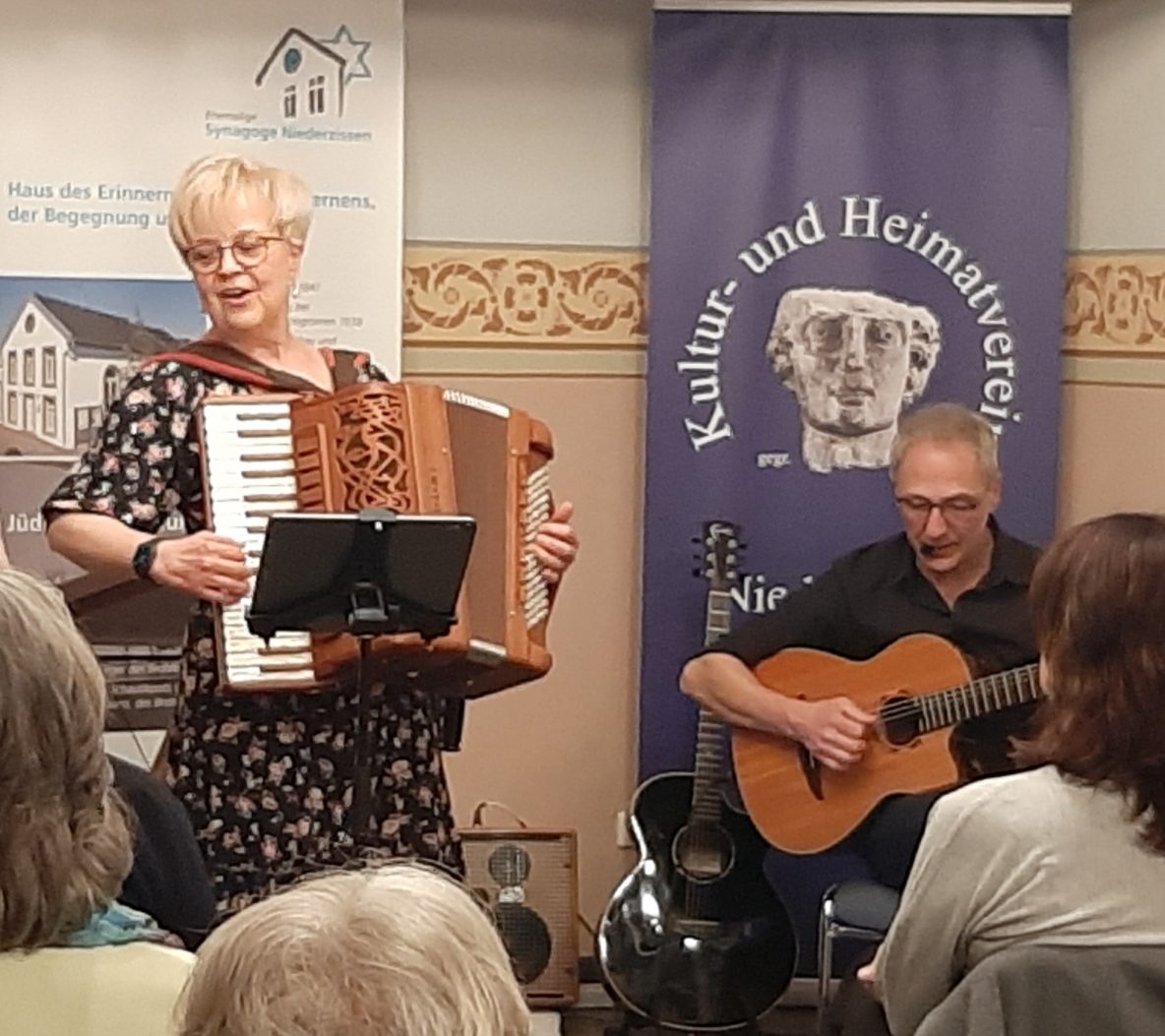 Erstmals gastierte das Duo Kaleido mit Almut Schwab, der Meisterin am Akkordeon, mehreren Flöten und Hackbrett, sowie Frank Zinkant, ein brillanter Gitarrenspieler, Komponist und Arrangeur in der ehem. Synagoge Niederzissen. Angekündigt als Duo, das die musikalischen Welten dreht, trafen sie genau den Nerv der begeisterten Besucher bereits bei den ersten Stücken, der aus synagogalen Musik kommenden „Intro Doina“ und der … Read More