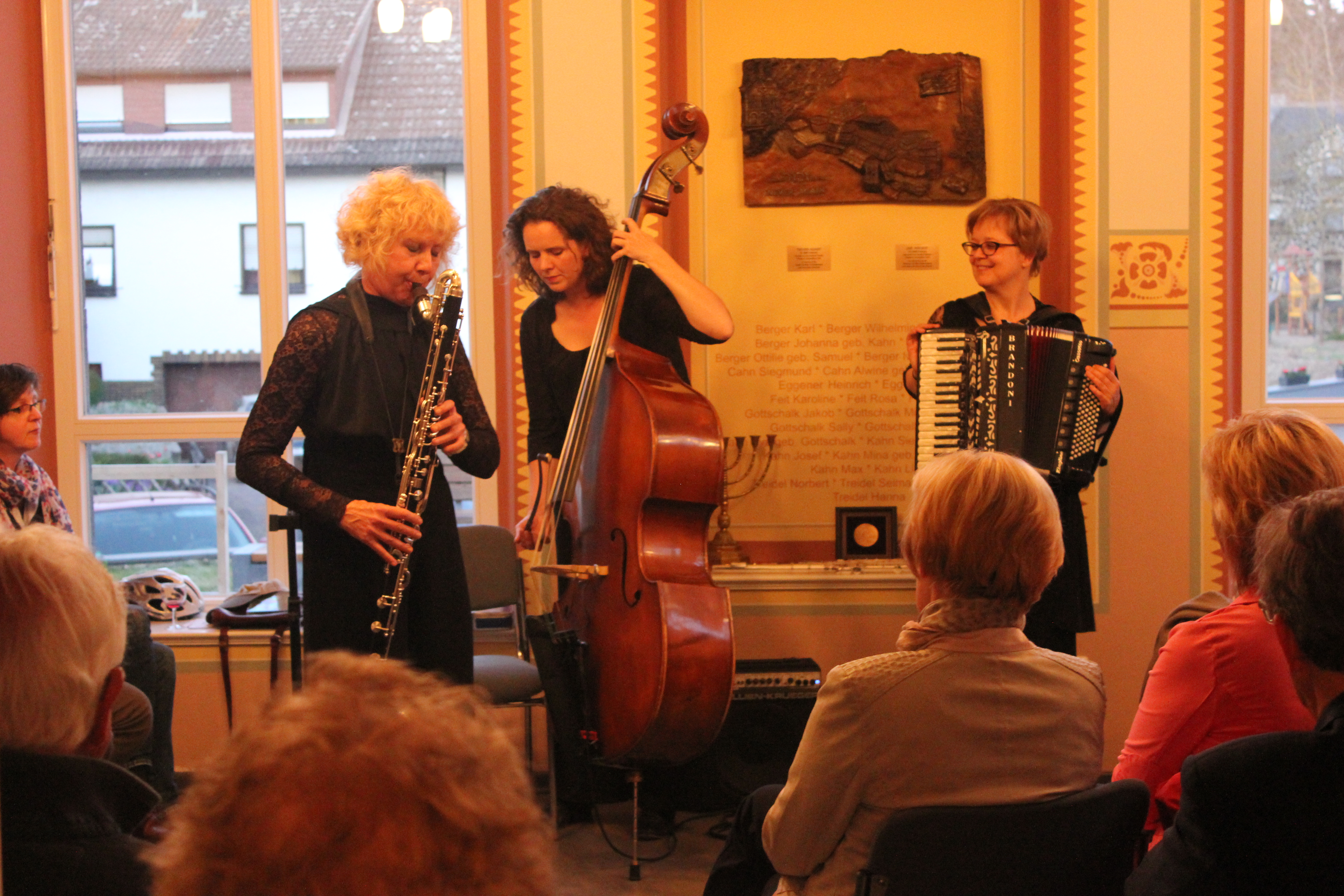 Niederzissen. Fröhlich und melancholisch, voll Lebensfreude und Herzblut, so ist das Resümee der Besucher des Klezmerkonzertes in der ehem. Synagoge Niederzissen. Vor zwei Jahren hatten die drei Damen, Gabriele Kaufmann (Klarinette und Bassklarinette), Almut Schwab (Akkordeon, Flöten und Hackbrett) sowie Nina Hacker (Kontrabass) versprochen, erneut ein Konzert in der ehrwürdigen, dafür