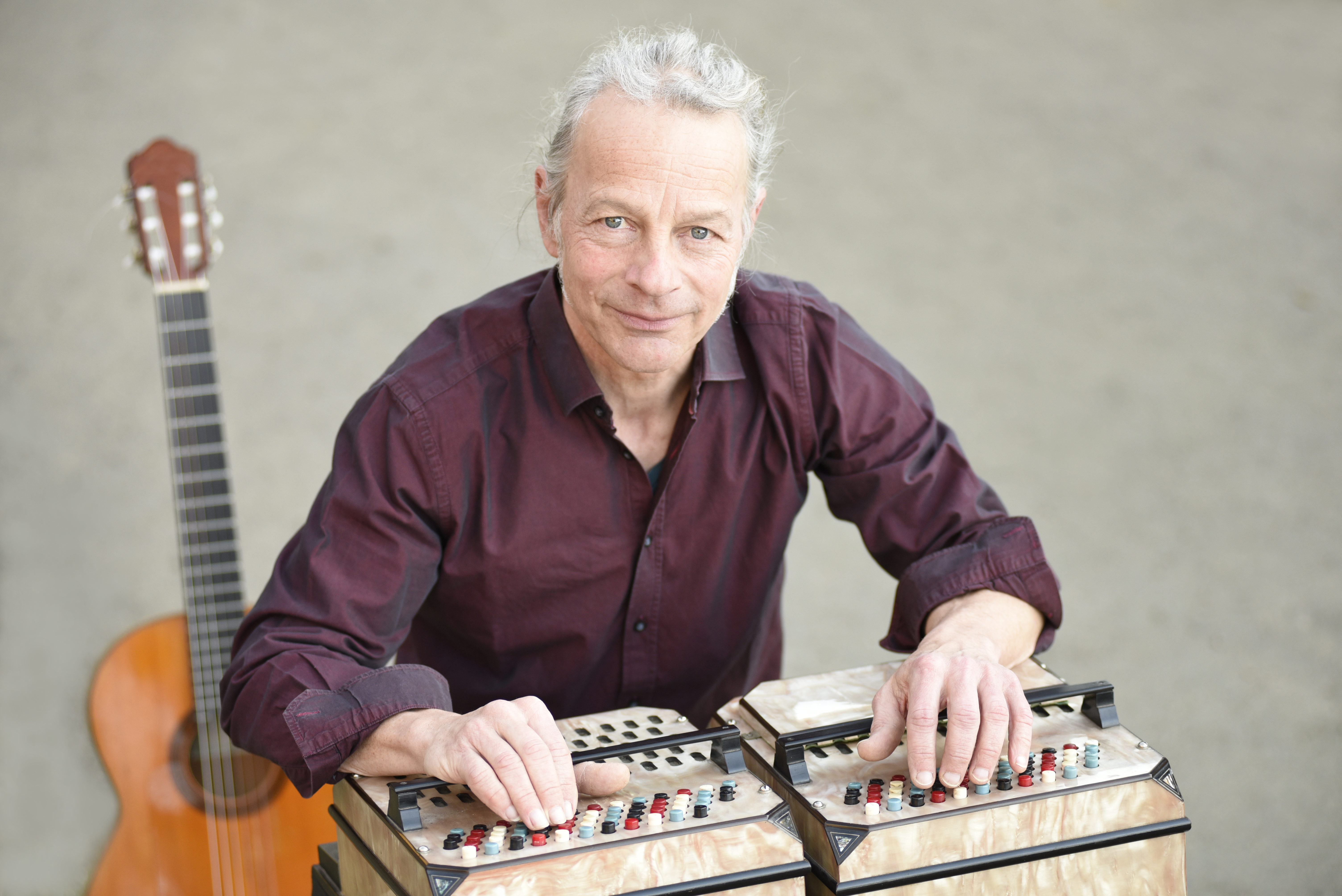 Mit den Instrumenten Gitarre, Akkordeon, Flöten und Hackbrett zaubert das Duo ein musikalisches Kaleidoskop, bei dem sich Latin, Jazz, Klezmer und Eigenkompositionen um die bunte Vielfalt der Klänge drehen.